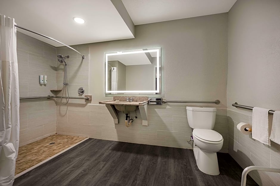 Key amenities include free on-site parking, free WiFi, air conditioning, and a 24-hour front desk. The inn is non-smoking and wheelchair accessible, with pet-friendly access available at an extra charge.